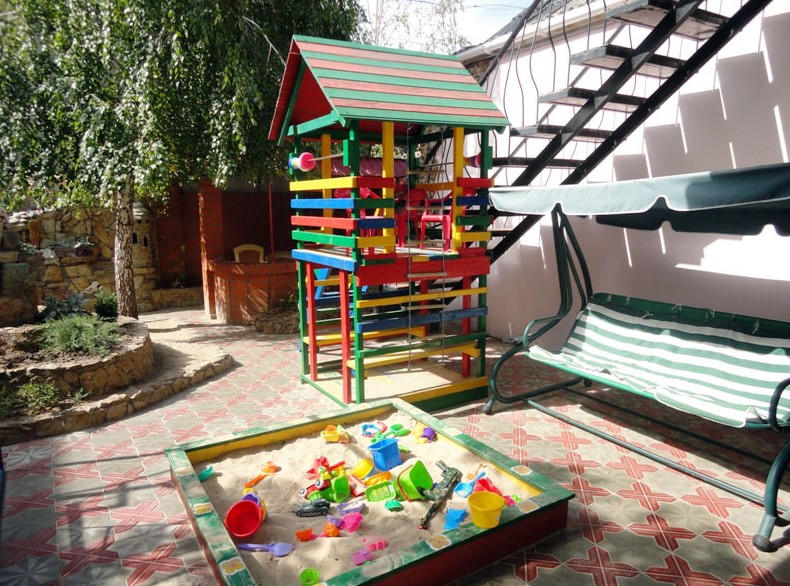 Дополнительные услуги: холодная и горячая вода круглосуточно, прачечная (платно), СВЧ (на кухне),зеленый двор, летние беседки, детская площадка, бассейн с подогревом, сейф (общий бесплатно), бадминтон, библиотека, организация экскурсий, организация профилактического лечения (центр Бубновского, пансионат Черноморская Зорька),диван-качели, водопад,WI-FI.в каждом номере. Смена белья и полотенец- каждые 5 дней, уборка по требованию.