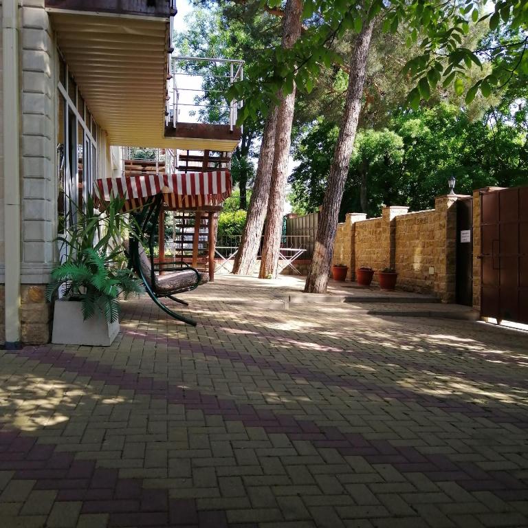 2 пляжа в 450 метрах от гостевого дома (7-10 минут ходьбы), прямой спуск с набережной к пляжу: бесплатный необорудованный городской галечный пляж (есть расчищенные от гальки участки для входа в море) и платный оборудованный пляж пансионата «Приветливый берег» с мелкой галькой. Рядом есть несколько столовых и кафе.