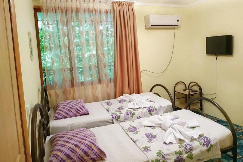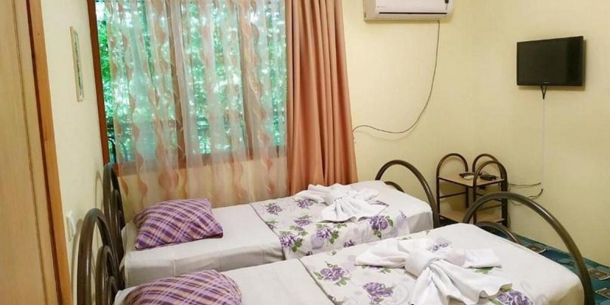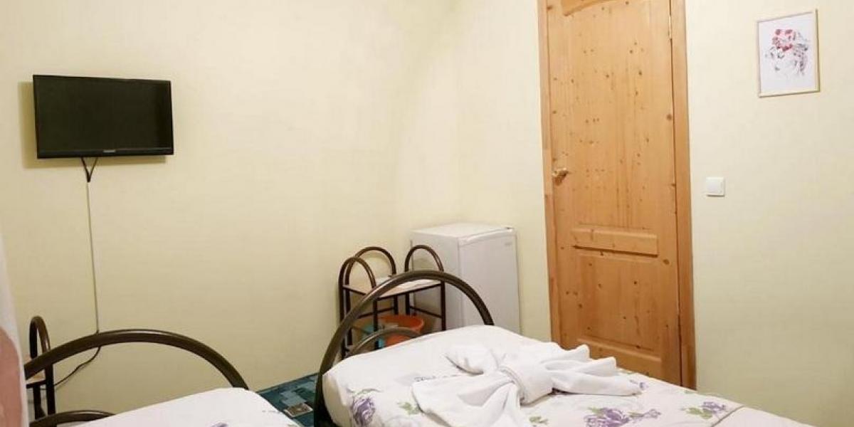 Размещение: каждый номер гостевого дома оснащен необходимым набором корпусной и мягкой мебели, туалетной комнатой с санузлом и душем (холодная и горячая вода круглосуточно), телевизором, холодильником, кондиционером, посуда, туалетные принадлежности.