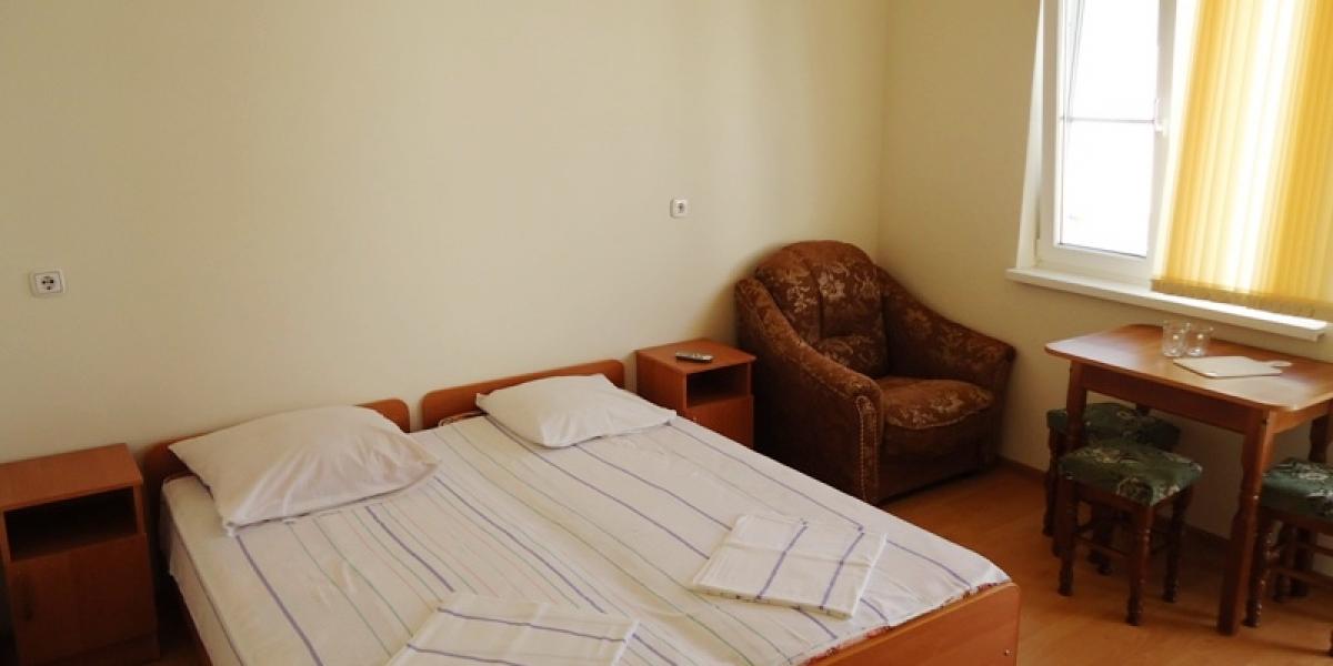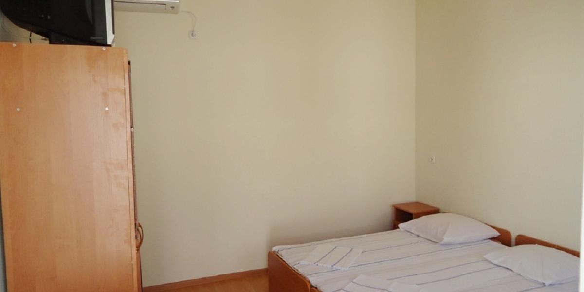 - эконом: 2-3х местные номера с удобствами на этаже. В номерах ТВ, кондиционер, шкаф, стулья, Wi-Fi. На 4 номера большая кухня, холодильник, душ, туалет, умывальник.