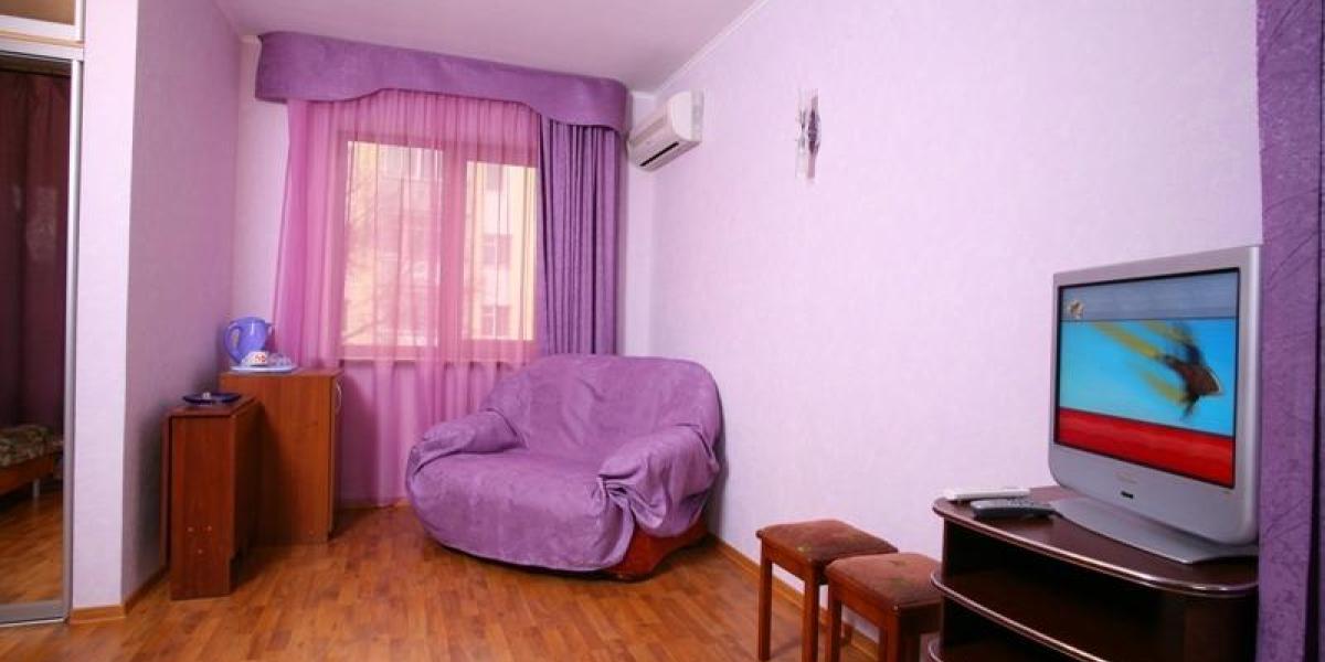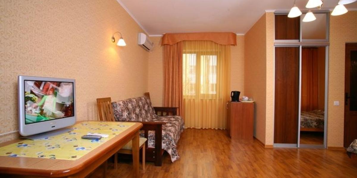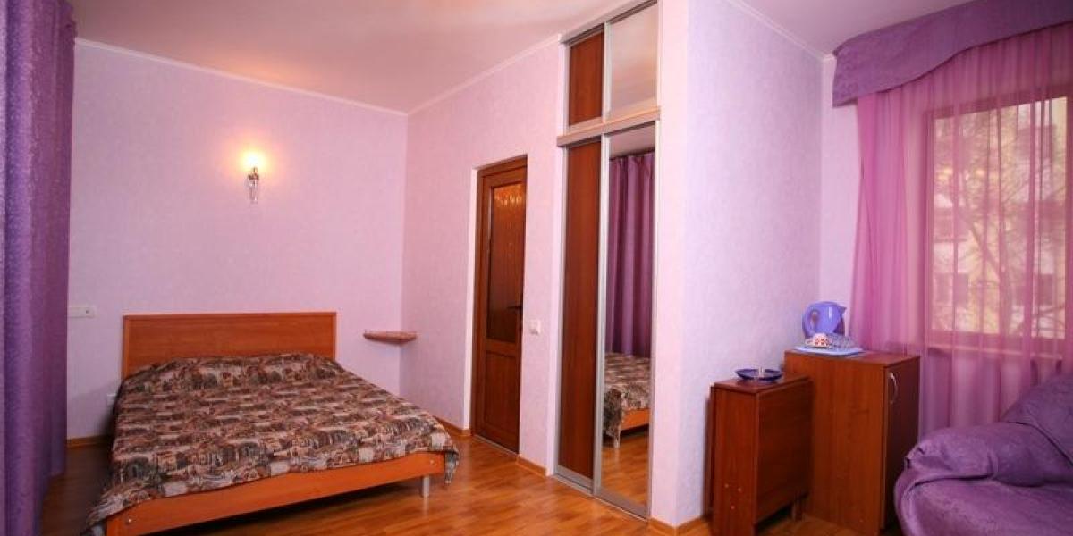Размещение: каждый номер гостевого дома оснащен необходимым набором корпусной и мягкой мебели, туалетной комнатой с санузлом и душем (холодная и горячая вода круглосуточно), телевизором, холодильником, электрочайником, кондиционером, туалетными принадлежностями. Вход в номера с общей террасы.