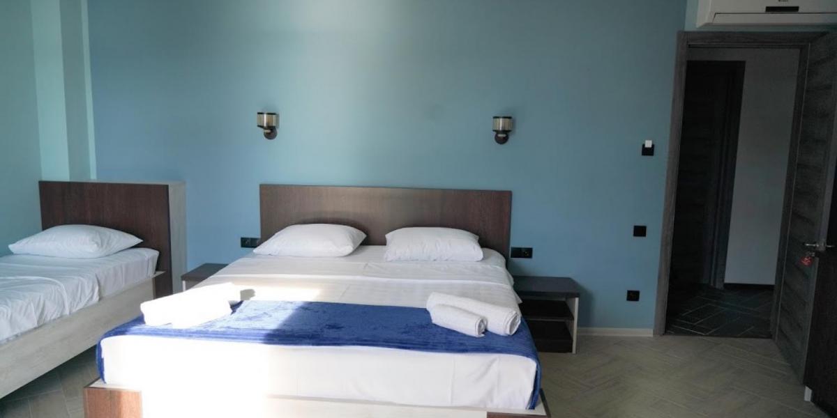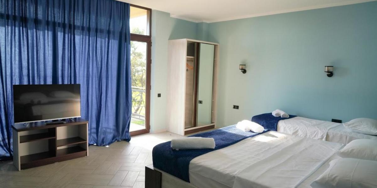 Удобства в номера: кондиционер, телевизор, общее лоджии, ванная комната + туалет, уборка номеров по запросу, смена полотенец и белья по запросу, Wi-Fi