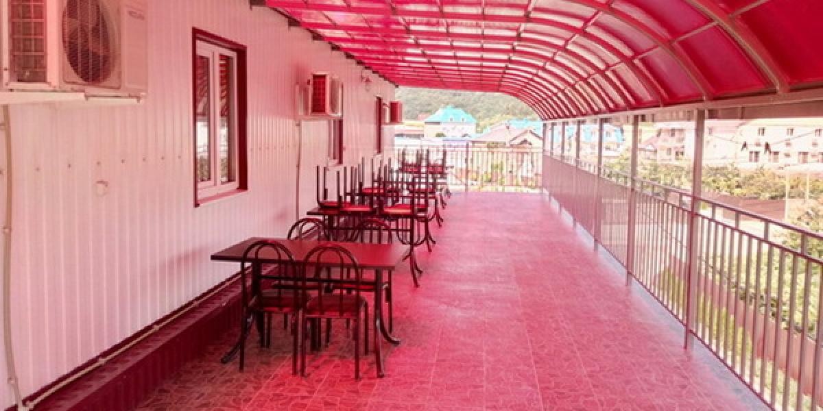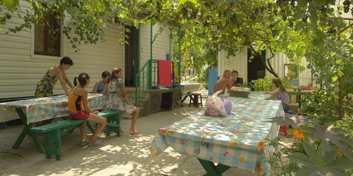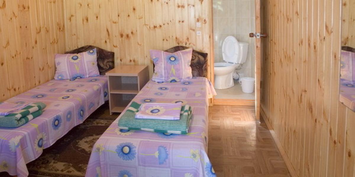 Размещение: небольшой комплекс из трех корпусов, 1-2-3-4-х местные номера с удобствами имеют вход с наружных террас и состоят из спальной комнаты и собственного санузла (туалет, умывальник, душ). В номерах кровати, шкаф для одежды, тумбочки, холодильник, телевизор, кондиционер (сплит-система). Общая терасса, оборудованная столами и стульями. Холодная и горячая вода постоянно.