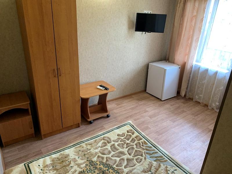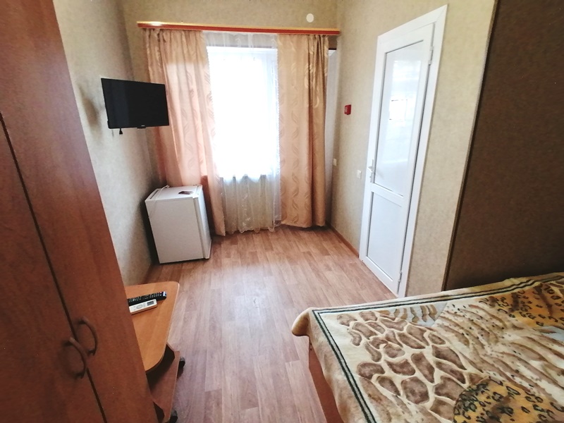 1-но местный номер в 2-х этажном корпус: в каждом номере санузел, душ, двуспальная кровать (размер 1,20 ), шкаф, прикроватные тумбочки, журнальный столик, сплит-система , холодильник, телевизор. Возможно размещение мамы+ребенка (стоимость по запросу).