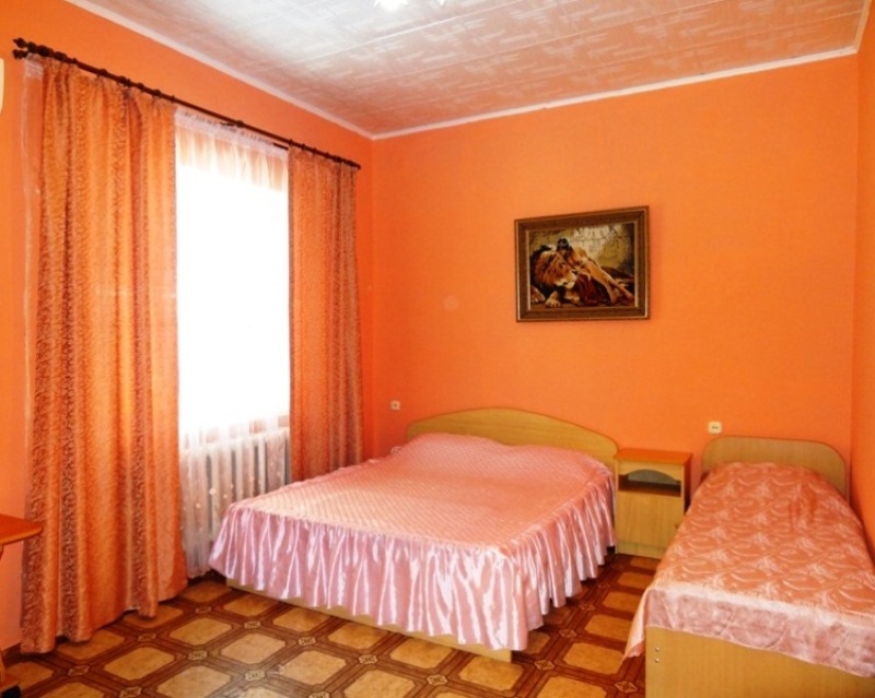 2-х и 3-х местные номера (в 2-х этажном корпусе-стандарт, в 4-х этажном корпусе-комфорт). Номера стандарт- небольшие по площади 12-16 кв.м., после ремонта, номера комфорт-по площади больше. В каждом номере санузел, душ, односпальные или двуспальная кровати, шкаф, прикроватные тумбочки, журнальный столик, сплит-система , холодильник, телевизор. Доп.место по запросу.