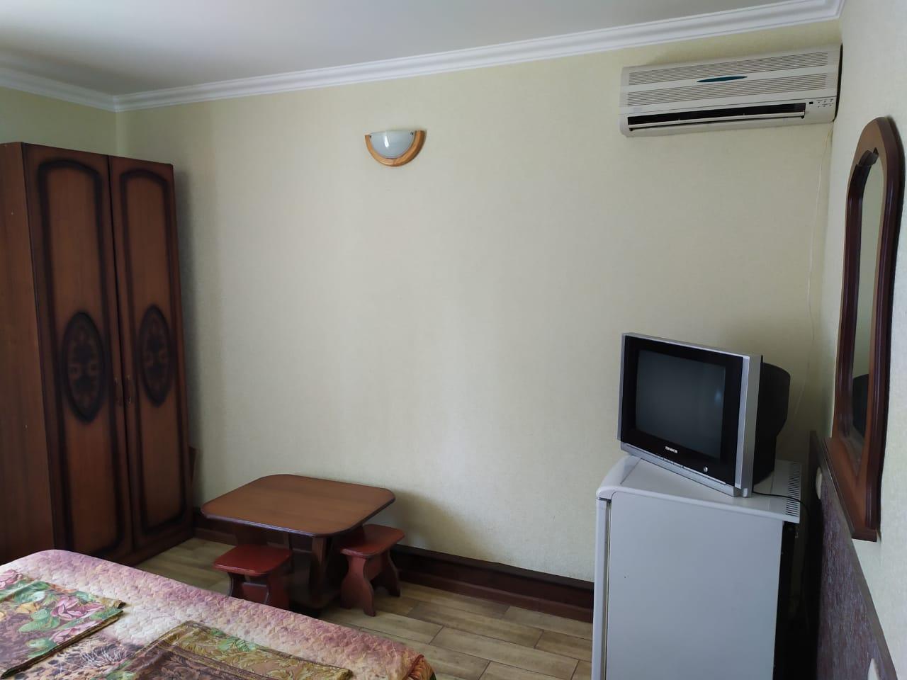 Размещение: трёхэтажное здание. Каждый номер гостевого дома оснащен необходимым набором корпусной мебели, туалетной комнатой с санузлом, (холодная и горячая вода круглосуточно), телевизором, холодильником, кондиционером.