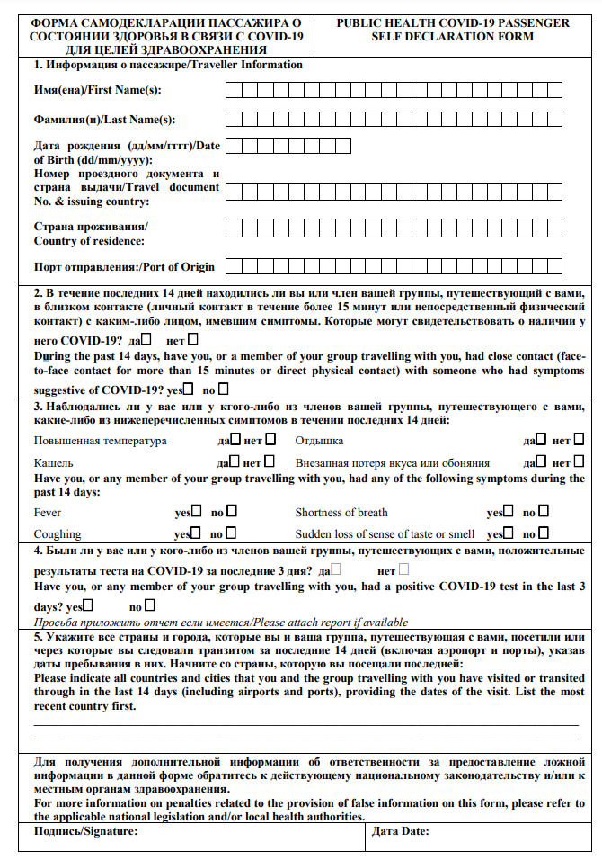 - отрицательный результат экспресс-теста на антиген COVID-19, полученный не позднее, чем за 48 часов до прибытия в пункт назначения.