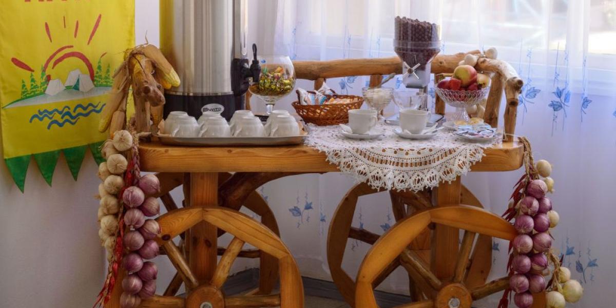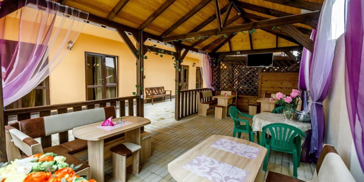 Питание: В столовой пансионата организовано 3-разовое комплексное питание для постояльцев (имеется возможность разбивки на трапезы). Проходит оно в просторном обеденном зале площадью 180 кв. м. В ежедневном рационе гостей присутствуют мясные и молочные блюда, приготовленные из экологически чистых продуктов кубанских хозяйств, а также свежие овощи и фрукты.