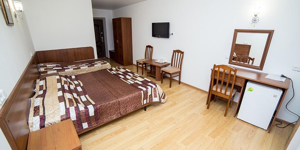 - 2-х и 3-х местные номера с удобствами. В номере (Душ, туалет, умывальник, ТВ, холодильник, кондиционер). Все номера укомплектованы необходимой мебелью (кровати, прикроватные тумбочки, стулья, стол, платяной шкаф).