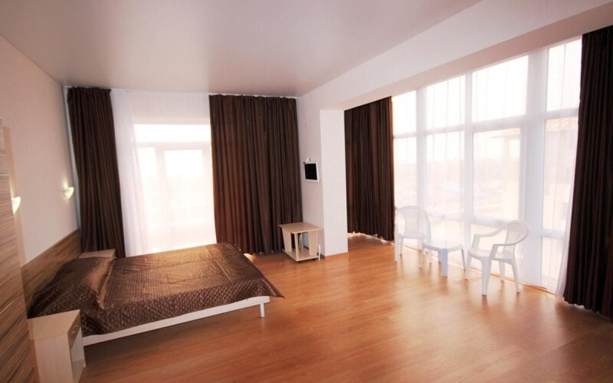 Все номера светлые и просторные, а их обстановка располагает к расслаблению и отдыху. Холодная и горячая вода в номерах – круглосуточно. Смена белья производится раз в 5 дней. Уборка — по требованию гостя. А также Wi-Fi-интернет, бассейн, вызов такси, поднос багажа, зоны отдыха на территории, шезлонги, зонты, трансфер по Анапе.